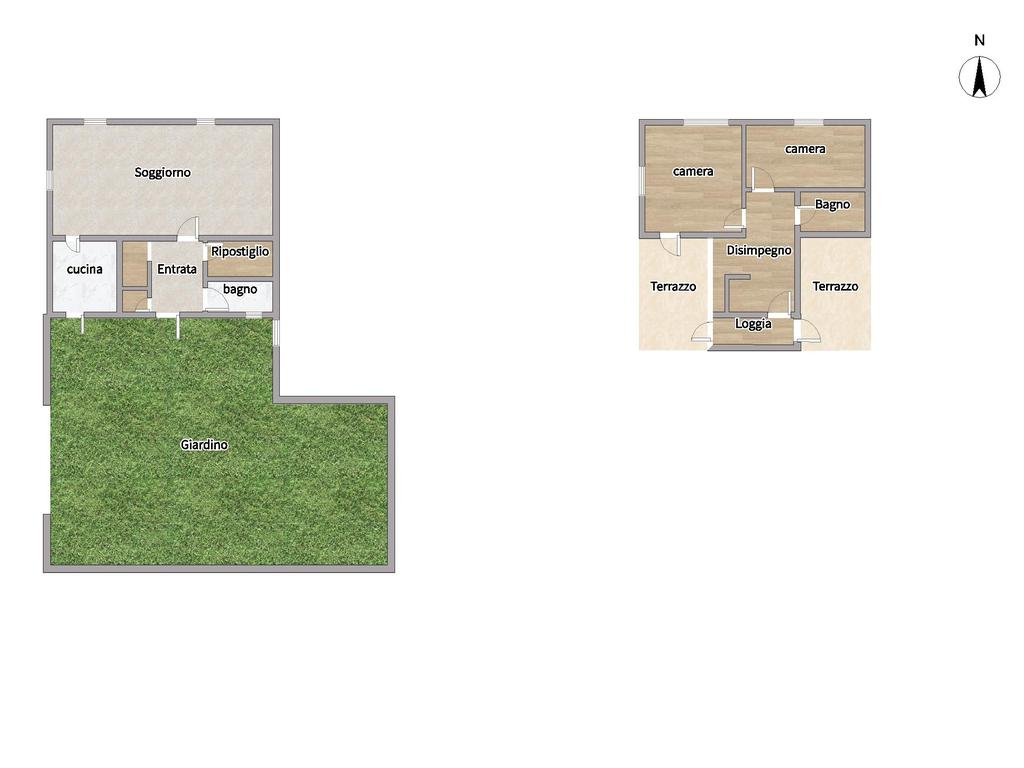 E' composto al piano terra da ingresso, cucina, soggiorno, bagno finestrato con doccia e due ripostigli.
