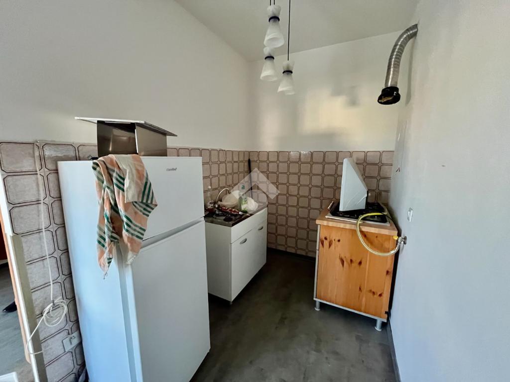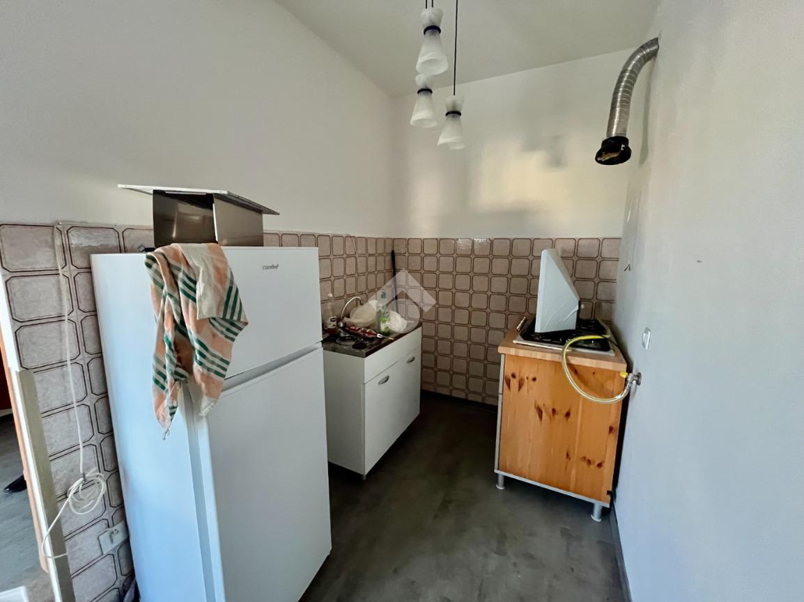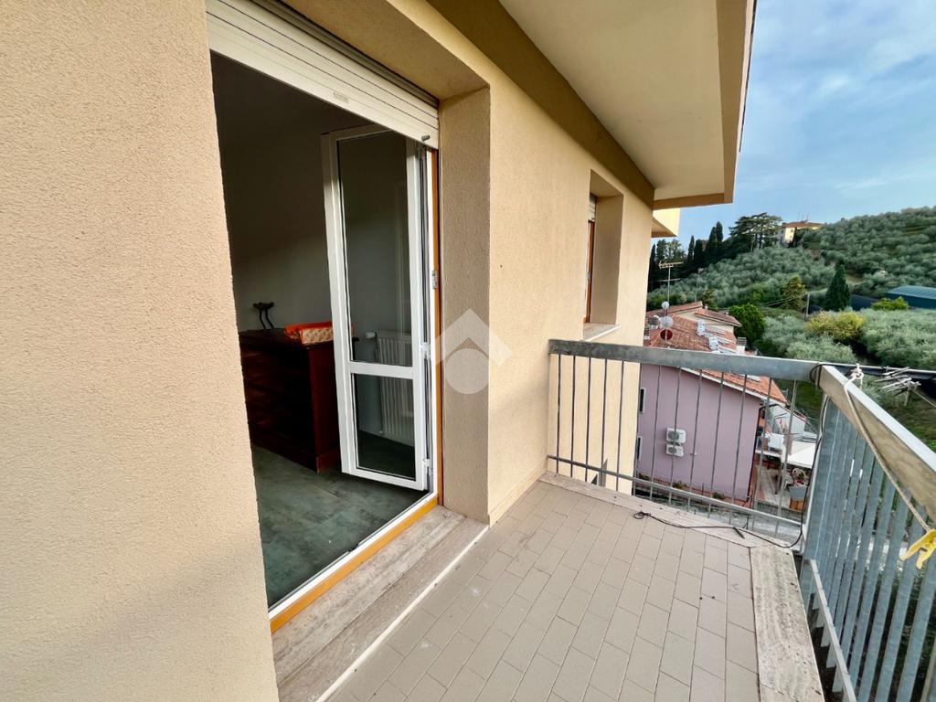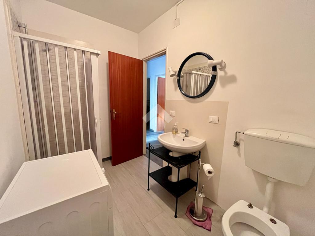 L'immobile è composto da soggiorno, cucinotto, camera matrimoniale, camera doppia, bagno con doccia, ripostiglio e due balconi.