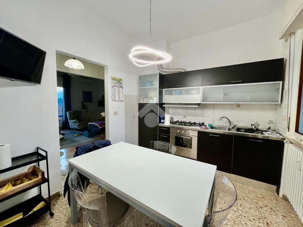 L'immobile è composto da soggiorno dotato di accesso al terrazzo, cucina abitabile, camera matrimoniale, camera doppia, camera singola, bagno finestrato con doccia e veranda attualmente adibita a lavanderia.
