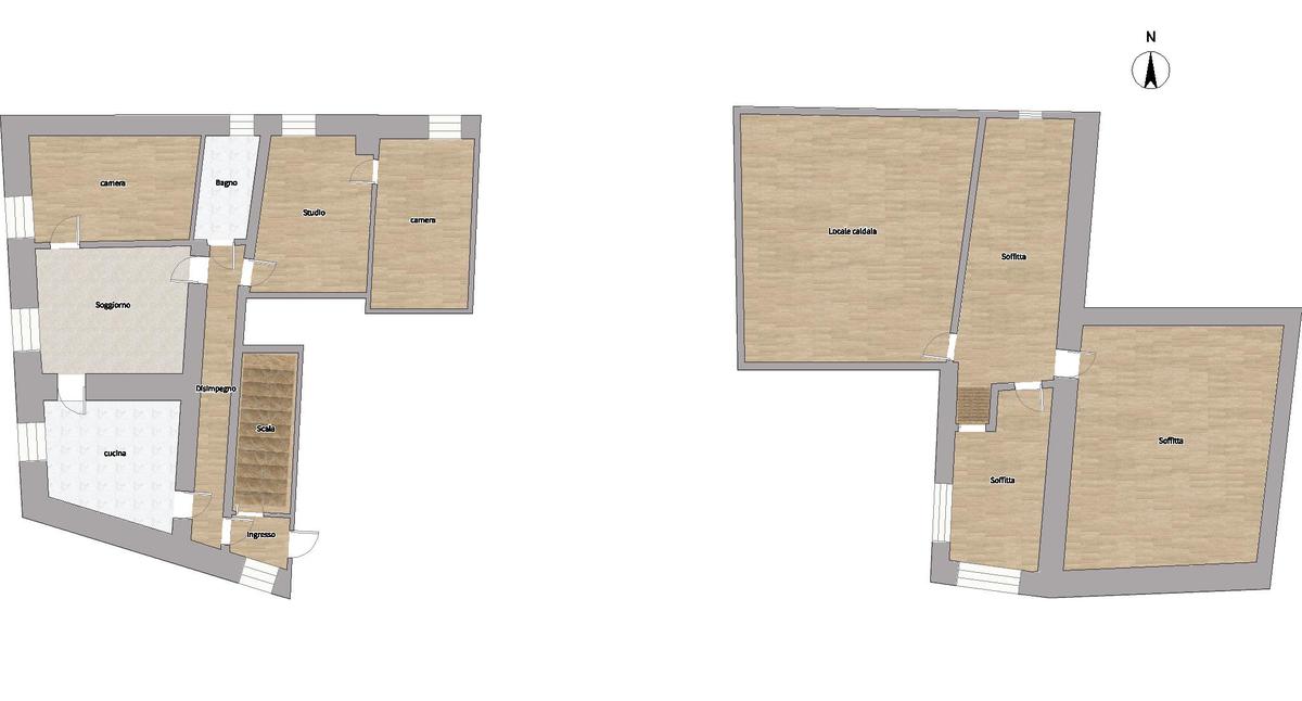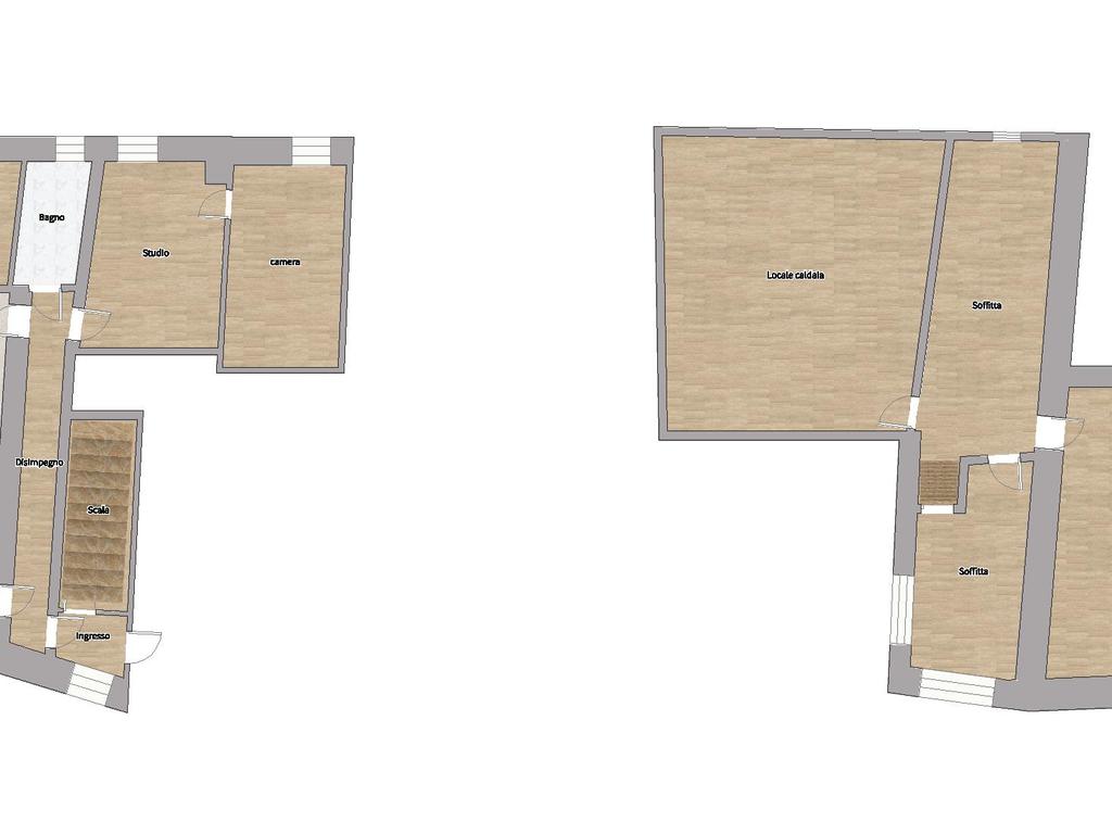 Composto da ingresso, cucina abitabile, soggiorno, camera matrimoniale, camera doppia, studio e bagno finestrato con vasca.