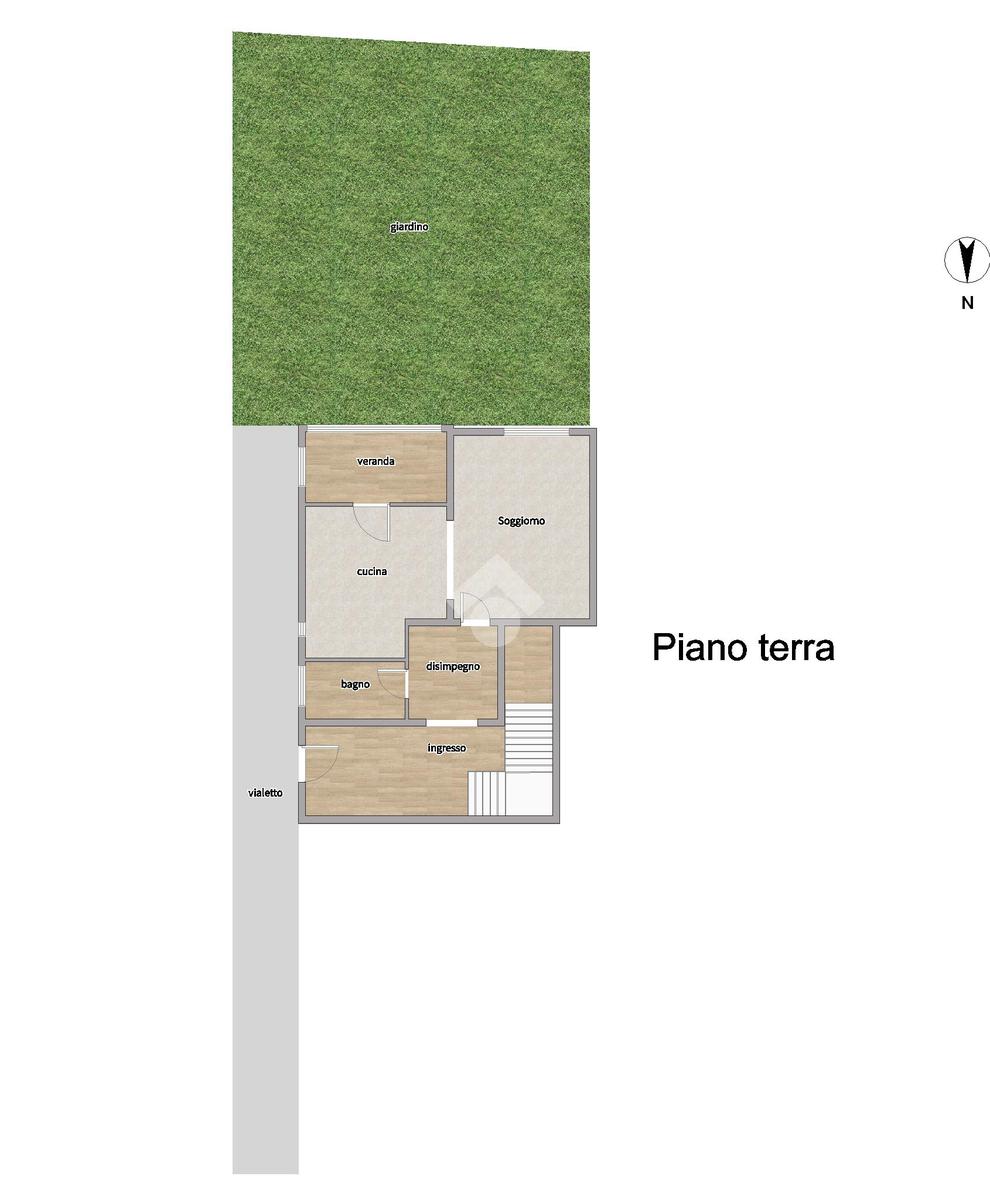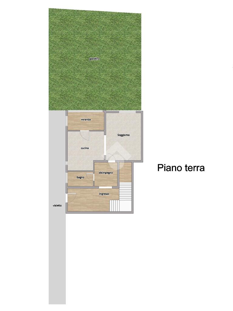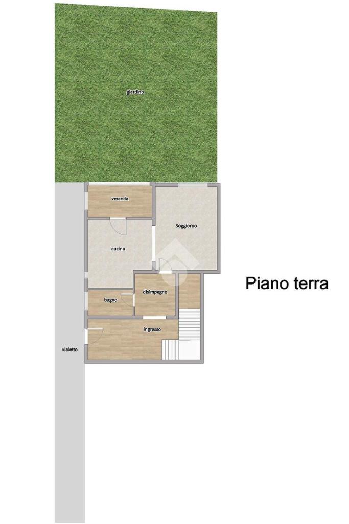 Composto al piano terra da ingresso, bagno finestrato, soggiorno e cucina servita da piccola veranda.