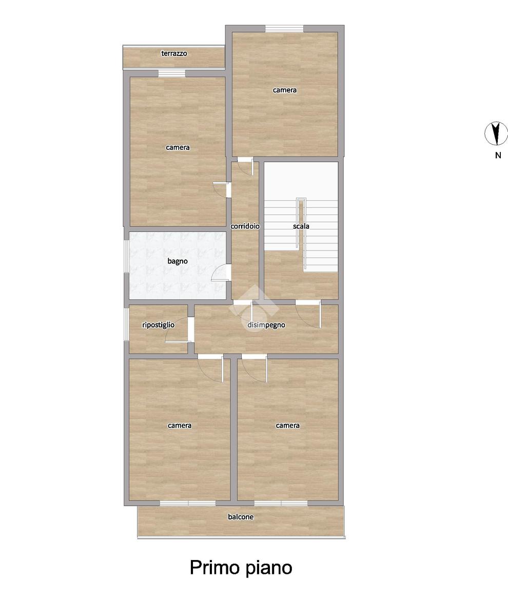 Tramite scala interna si accede al primo piano dove troviamo tre camere matrimoniali, una camera doppia, ripostiglio e bagno finestrato con doccia.