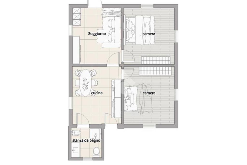 L'immobile è composto da cucina, soggiorno, due camere matrimoniali e bagno finestrato con vasca.