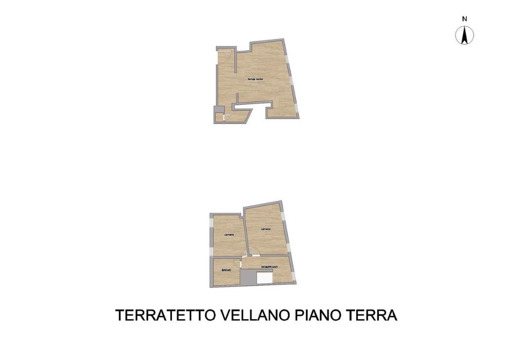 La seconda unità è composta al piano terra dal soggiorno con angolo cottura e al primo piano da una camera matrimoniale, due ripostigli ed il bagno con doccia.