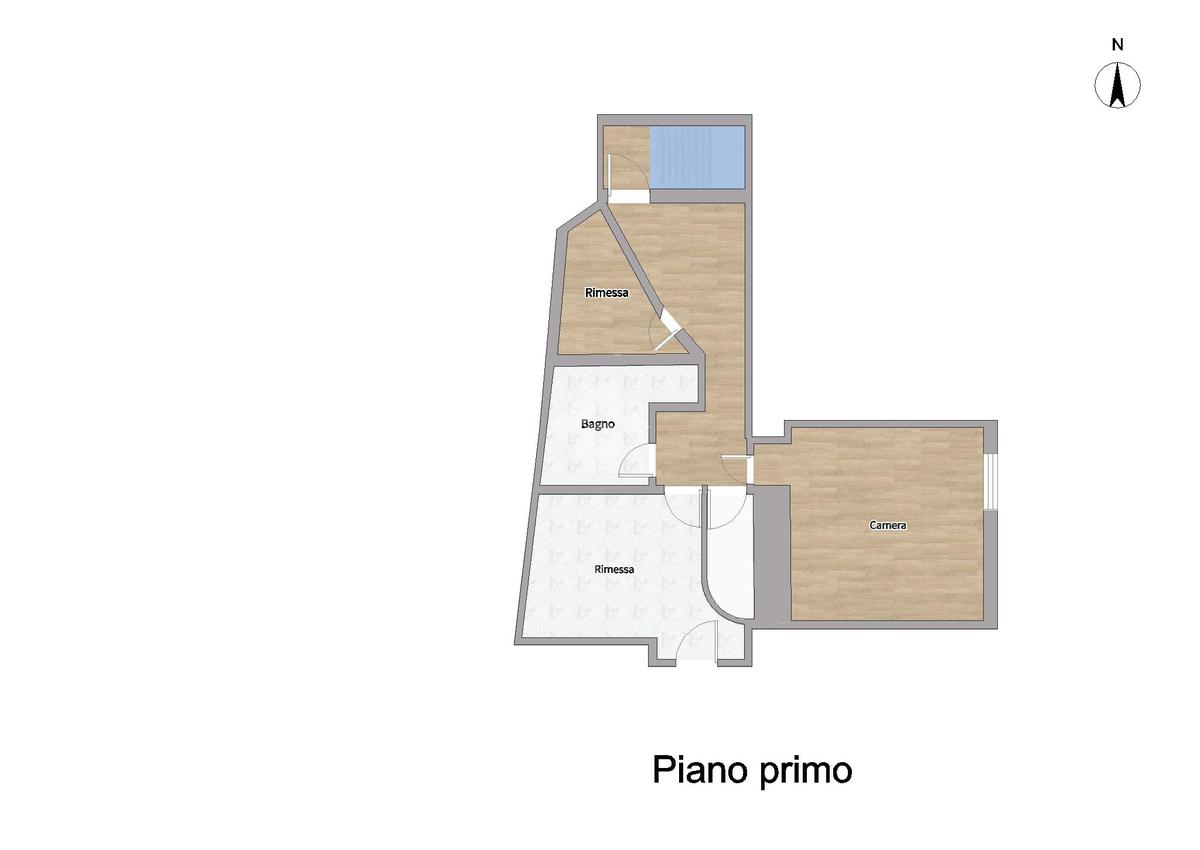 Al primo piano troviamo una camera matrimoniale, una camera doppia e un bagno finestrato con doccia.