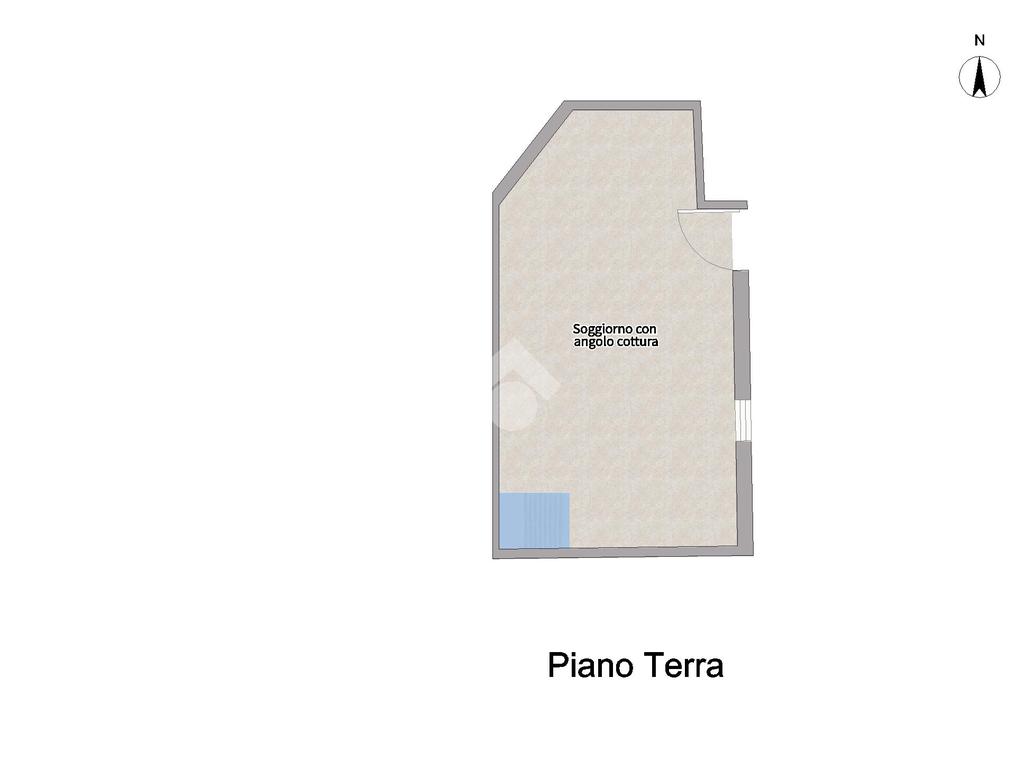 La prima si svuluppa su due livelli: al piano terra troviamo un ampio soggiorno con angolo cottura e un bagno di servizio.