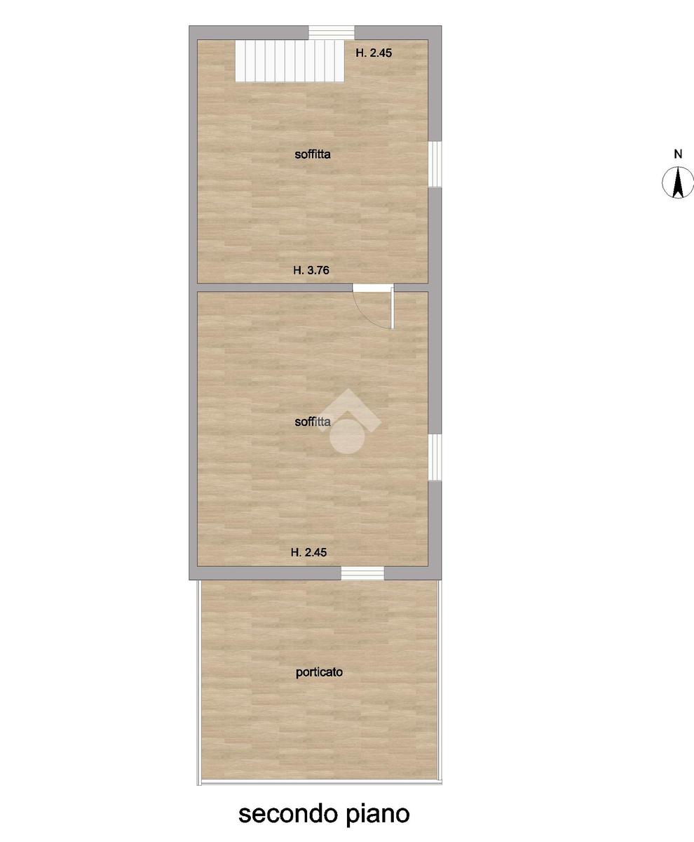 Piano secondo a tetto, che comprende due vani ad uso soffitta da poter adibire a camere da letto e con accesso al porticato.