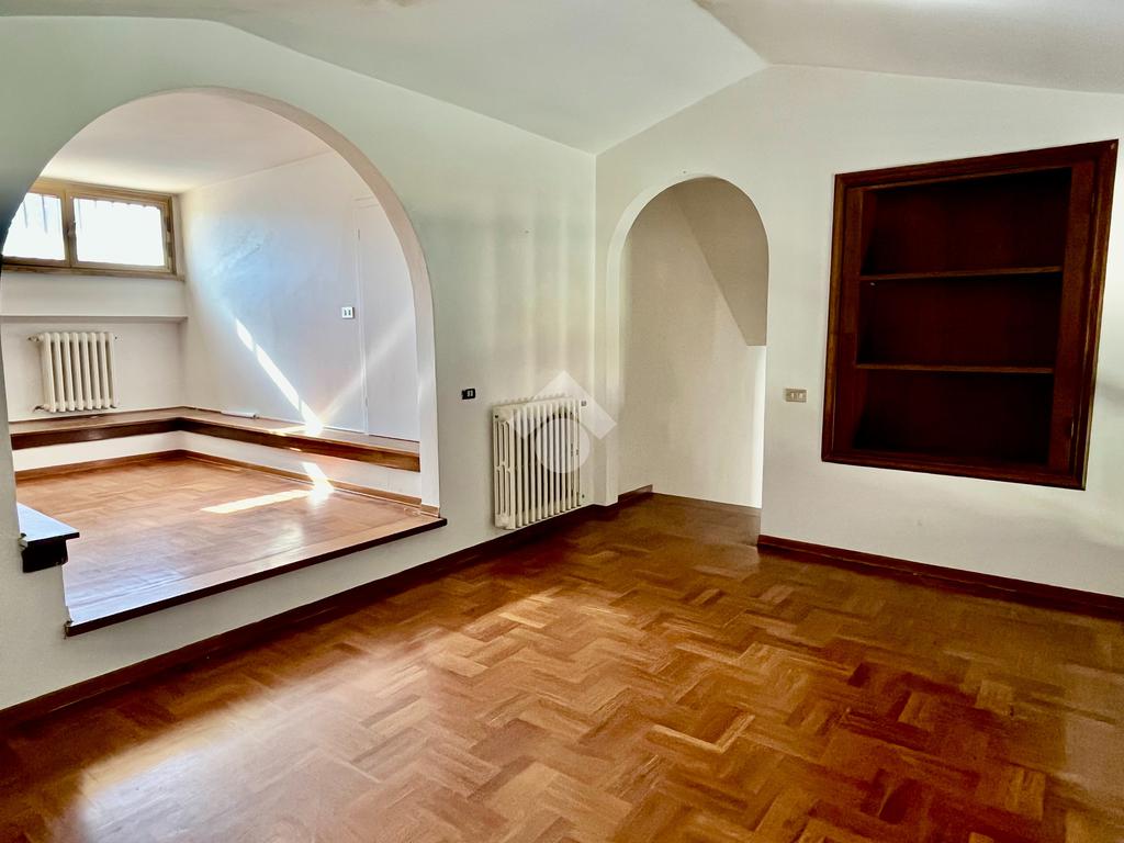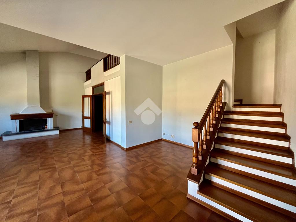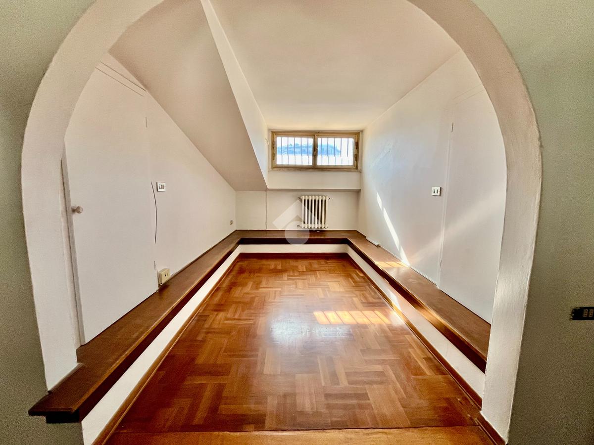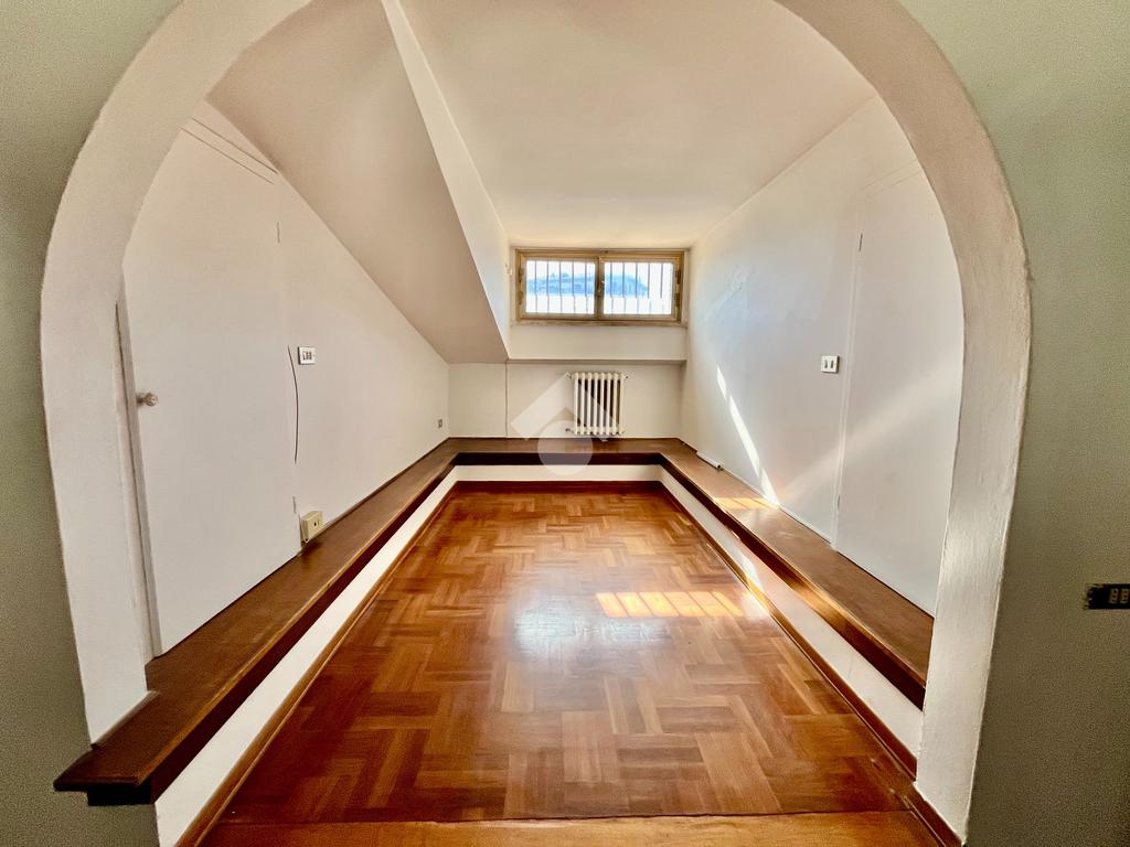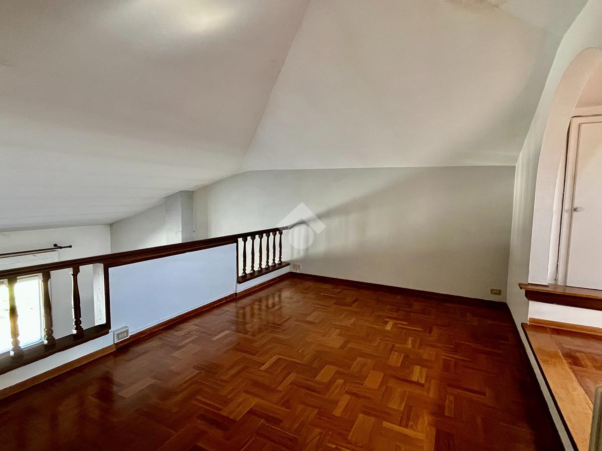Si accede da scala interna all'appartamento che è composto da ampio ingresso, soggiorno doppio con camino e balcone, mansarda con ripostiglio sottotetto, sala da pranzo e cucinotto, entrambi dotati di accesso al balcone.
