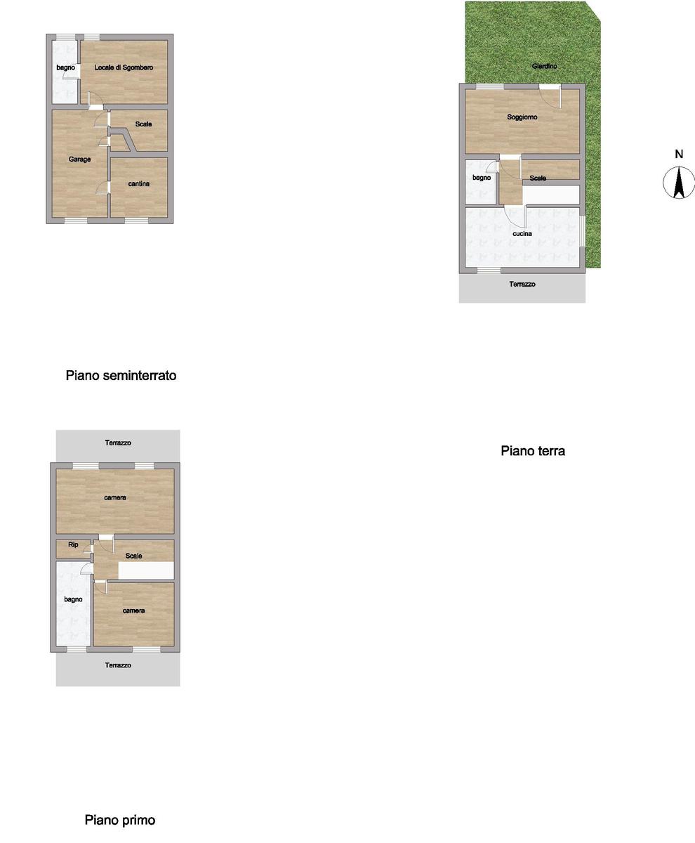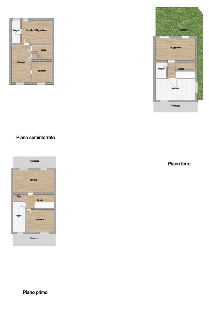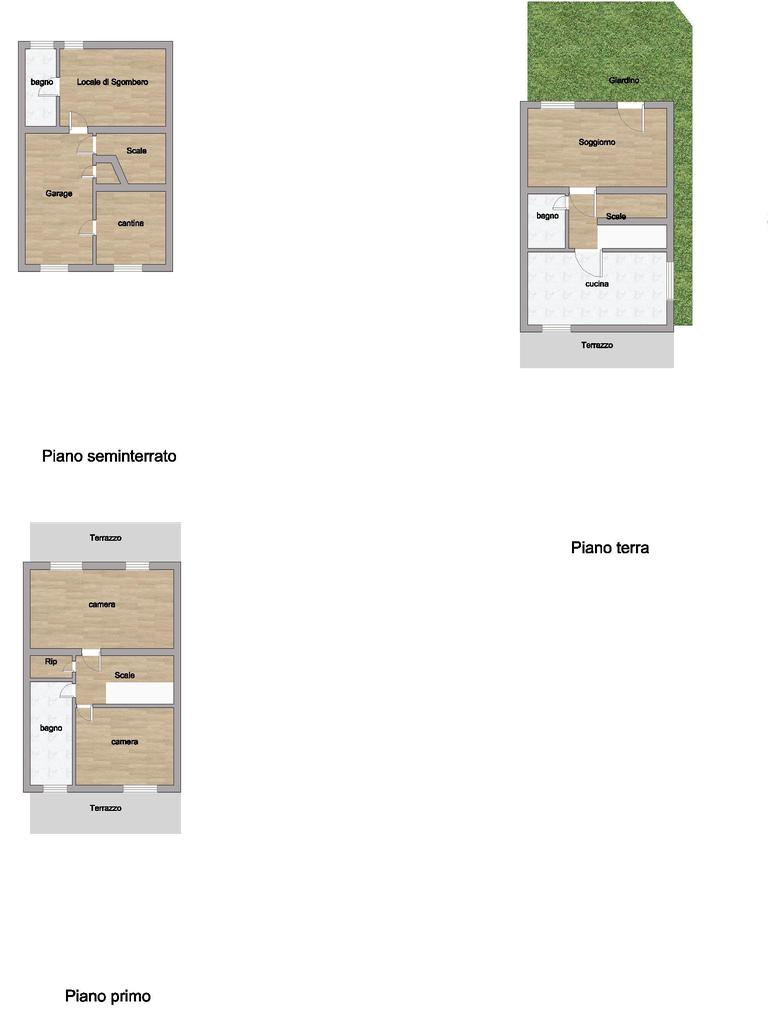 Proponiamo una villetta a schiera libera su tre lati che si sviluppa su tre livelli, oltre soffitta non praticabile.
