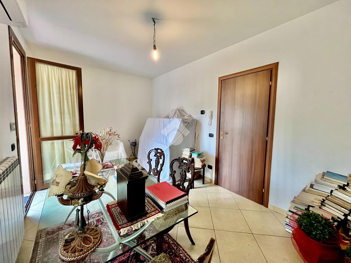 Al primo piano è composta da bagno finestrato con vasca, ripostiglio, camera matrimoniale ed una camera doppia, entrambe dotate di terrazzo.