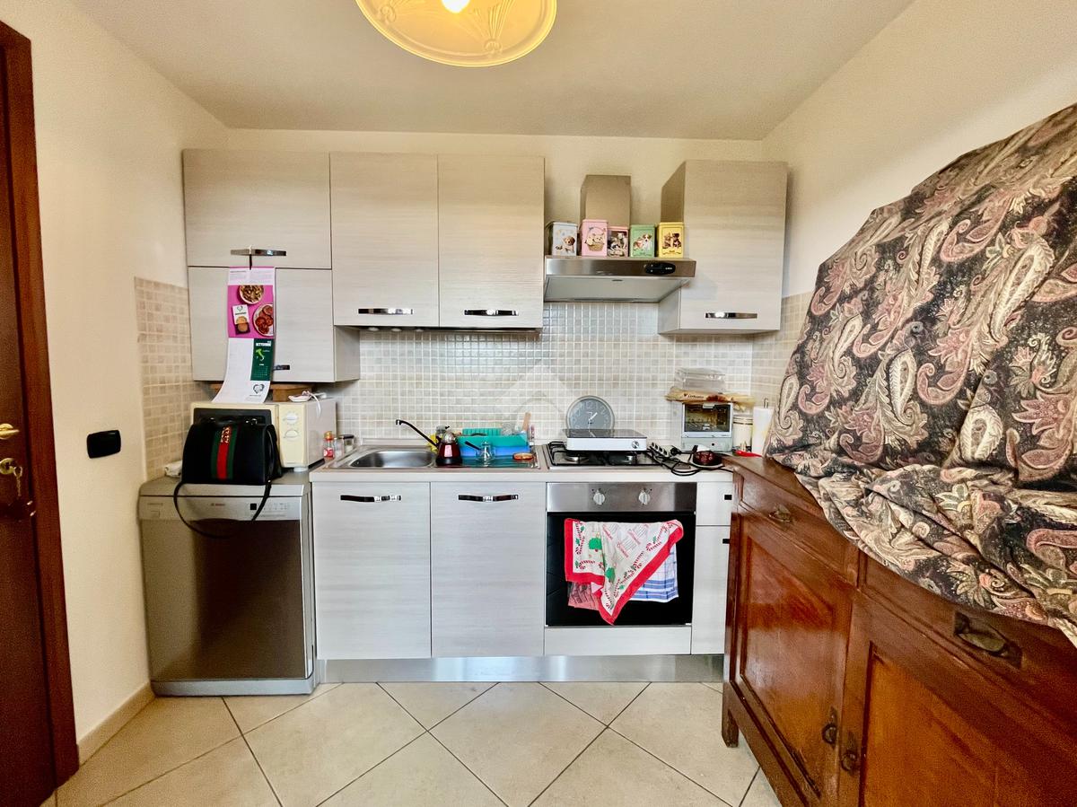 Al piano terra è composta da ingresso-soggiorno, cucina con accesso al terrazzo, disimpegno e bagno con doccia.
